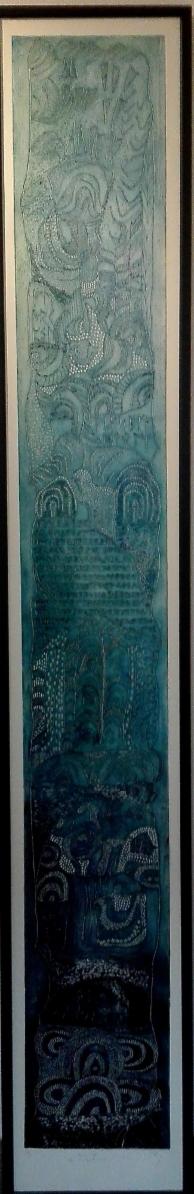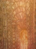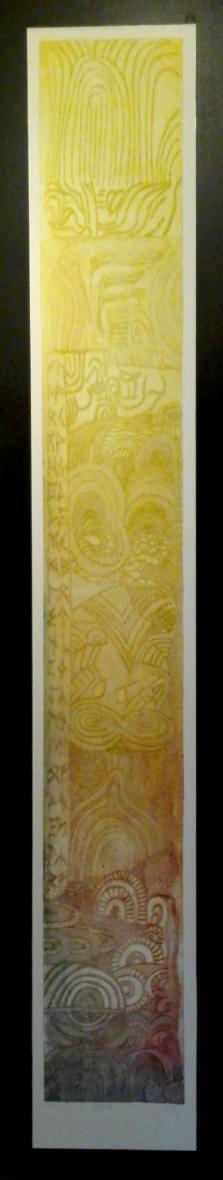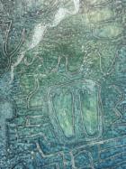 Les empreintes de pierres mégalithiques chargées de sens et d’Histoire sont prises directement, par tamponnage sur la plaque de plomb afin de charger celle-ci de « la peau des pierres », de l’esprit du lieu et du temps. Cette charge émotionnelle se retrouve en dilution homéopathique dans les estampes. Mais l’histoire de l’évolution de l’homme se traduit aussi par l’évolution de l’écriture, c’est pourquoi sont mêlés des symboles, des premières écritures, qu’elles soient phéniciennes syriennes, runiques ou furthark, peu importe, elles sont la trace de l’histoire humaine.